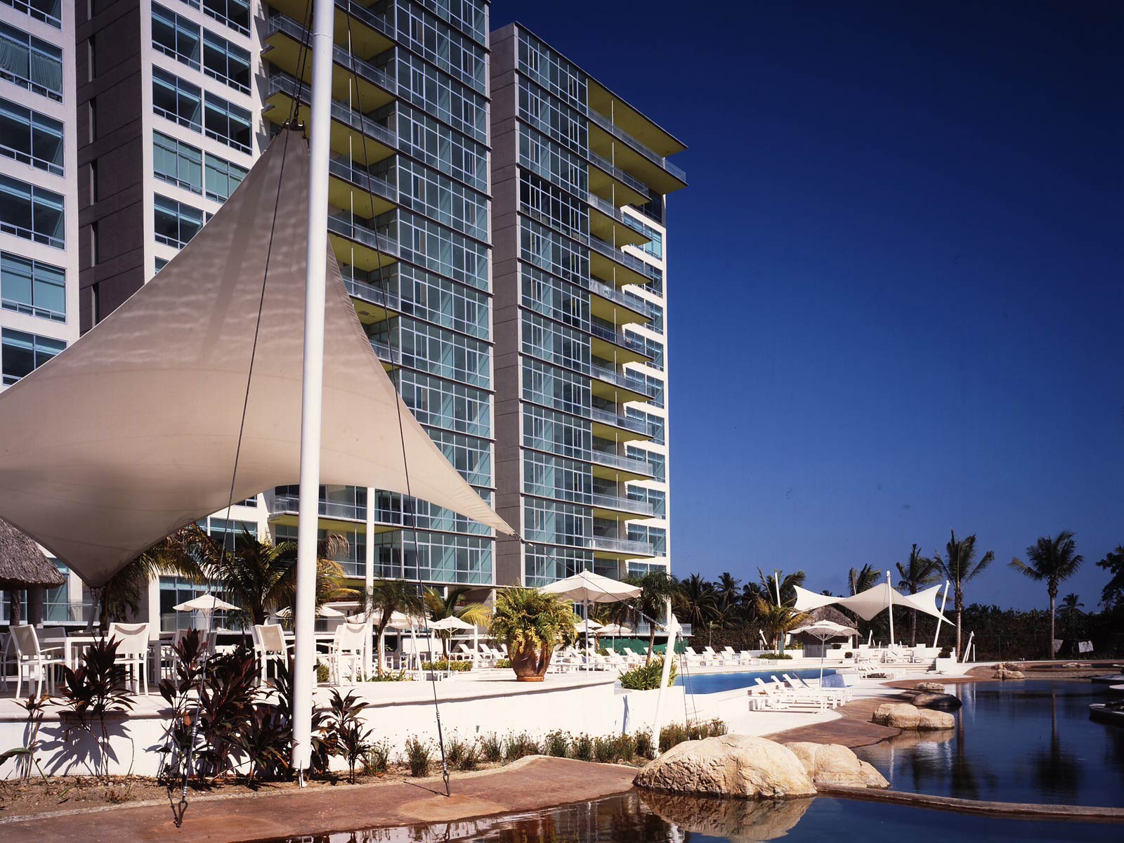 Las seis torres del conjunto de Departamentos se desplantó en un terreno de sección trapezoidal cual profundidad del terreno es 6 veces mas con respecto al frente del mismo; y comunicando de forma directa a la Av. De Las Naciones y Av. De Las Palmas. La superficie es de 40,672.44m² y el uso es habitacional. Por las características topográficas del predio se considero un medio sótano, el cual funciona como estacionamiento y delimita la zona de servicios con la zona común. En esta zona común se aloja las albercas que dan continuidad con la vista al mar, un asoleadero, una casa club y un bar. Las áreas deportivas se localizan en el acceso al predio, con canchas de tenis, voleibol y un golfito en el extremo opuesto del predio.