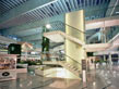 El gran espacio central está cubierto por un domo de cristal con una película que proyecta una sombra semejante al dibujo que generan los árboles en el piso creando un efecto exterior en un espacio con confort climático.