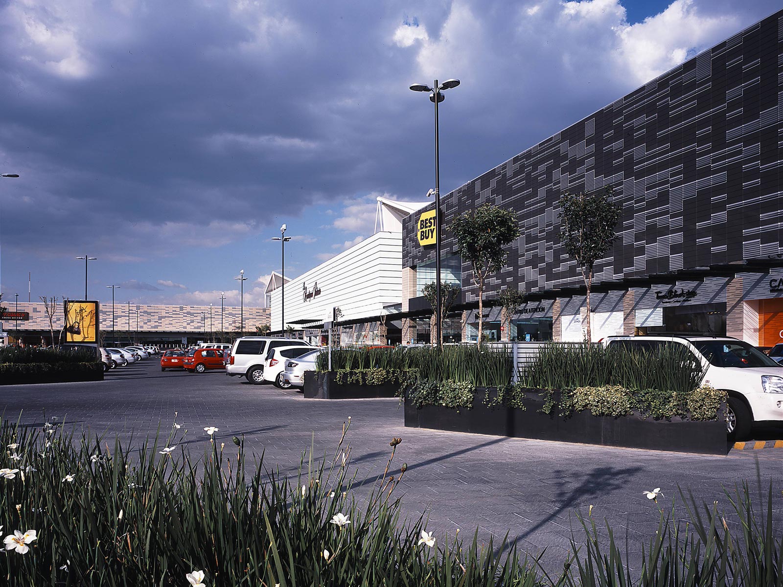 El edificio aloja un complejo cinematográfico, un gimnasio, una serie de restaurantes y tiendas organizadas en una calle peatonal que prolonga la calle de la ciudad, rematando en una plaza a la que converge otra calle transversal que las lleva en una dirección al gimnasio y en la otra al futuro hospital, hoy en construcción.