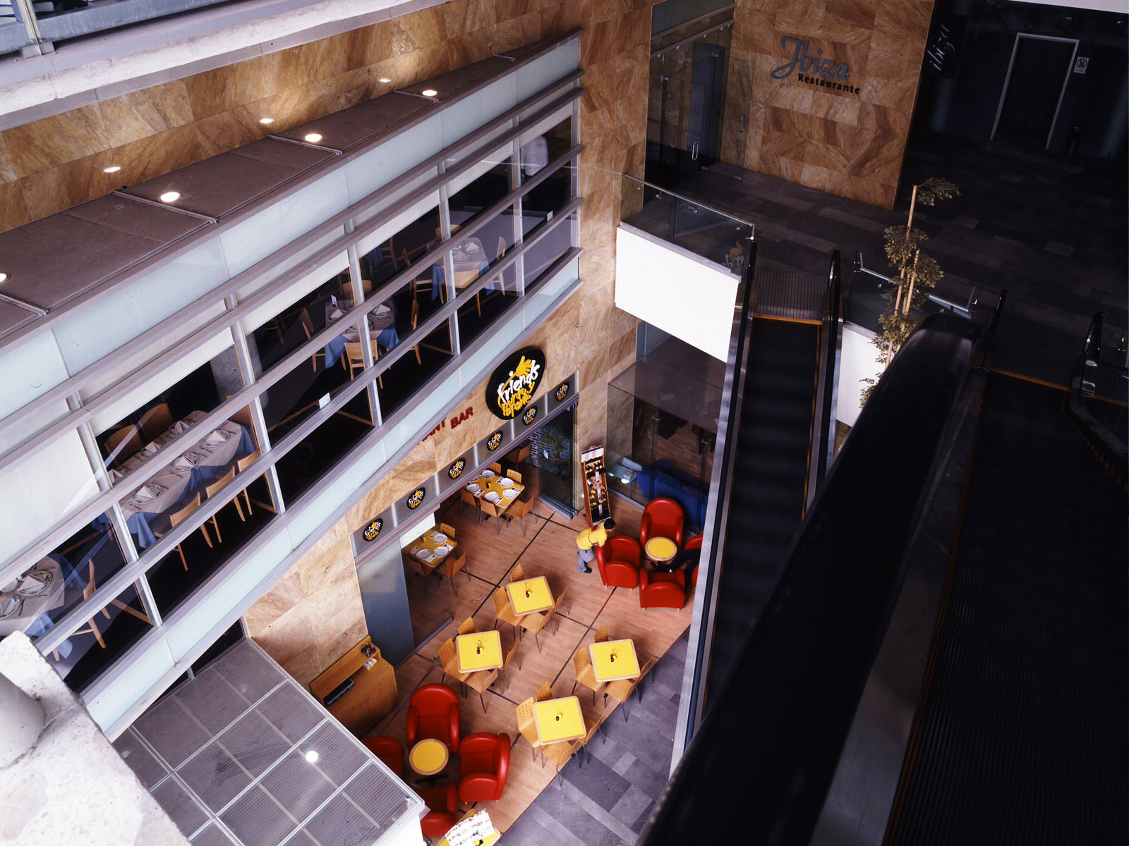 La misma arquitectura del conjunto generó espacios agradables enfatizados por su estructura de concreto aparente, el concepto de transparencia lograda con la gran piel de cristal como envolvente de estos espacios que permiten de manera natural desarrollar a los restaurantes elevados; que además cuentan con servicios apropiados para su funcionamiento.